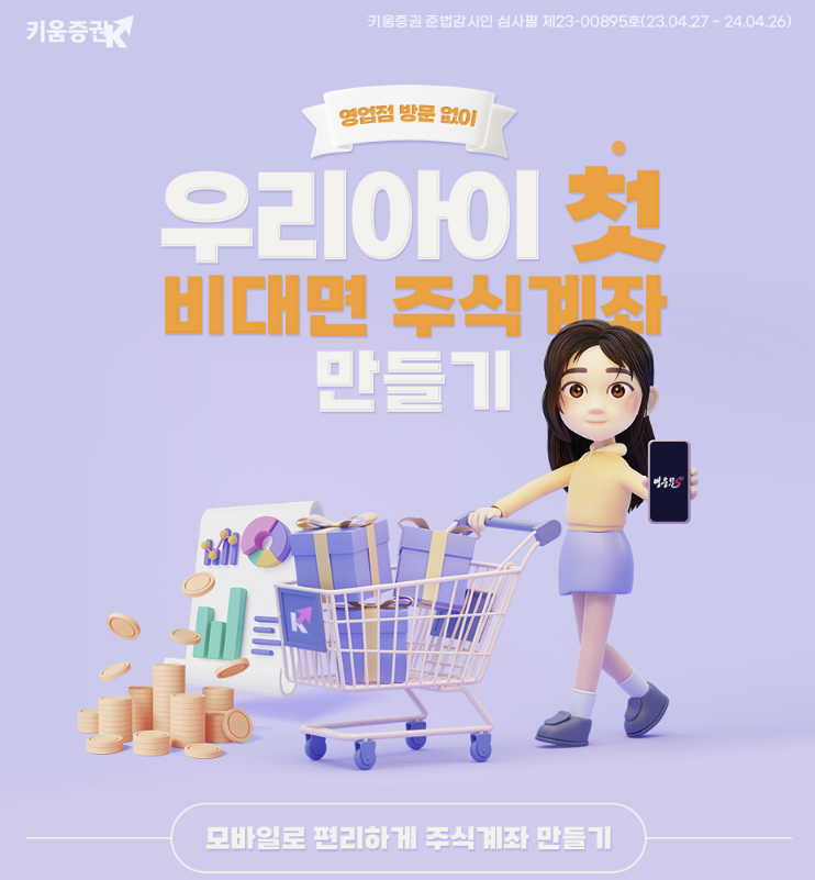 키움증권에서는 증권사를 방문하지 않아도 간편하게 모바일로 자녀계좌개설이 가능합니다.